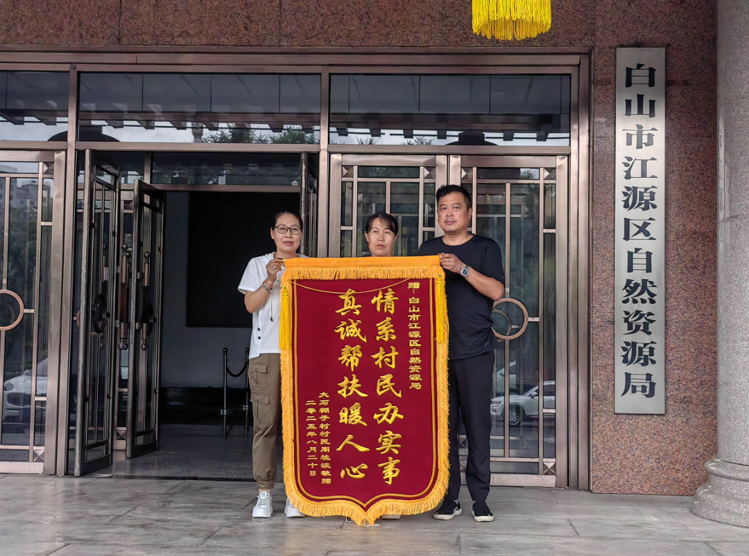 8月20日,江源区石人镇大石棚子村村民周女士将一面承载着感激之情的锦旗送到区自然资源局,以此感谢局党组在其耕地遭受损毁后,迅速行动、积极作为,为其解决了燃眉之急。